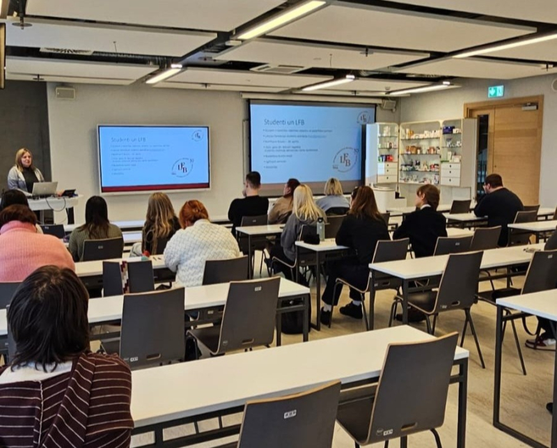 2025. gada 1. decembrī Latvijas Faramceitu biedrība bija aicināta iepazīstināt Latvijas Universitātes Medicīnas un dzīvības zinātņu fakultātes Farmācijas bakalaura 1. kursa studentus ar Latvijas Farmaceitu biedrību, tās mērķiem un uzdevumiem, kā arī pastāstīt par farmaceita darbu un LFB lomu tajā. Lekcijas laikā LFB projektu koordinatore Monta Zimerte studentiem detalizētāk pastāstīja gan par biedrību un tās aktvitātēm, gan studentu iespējām līdzdarboties LFB darbā, piemēram, esot daļai no Latvijas Farmācijas studentu asociācijas (LFSA) vai apmeklējot LFB organizētos pasākumus.